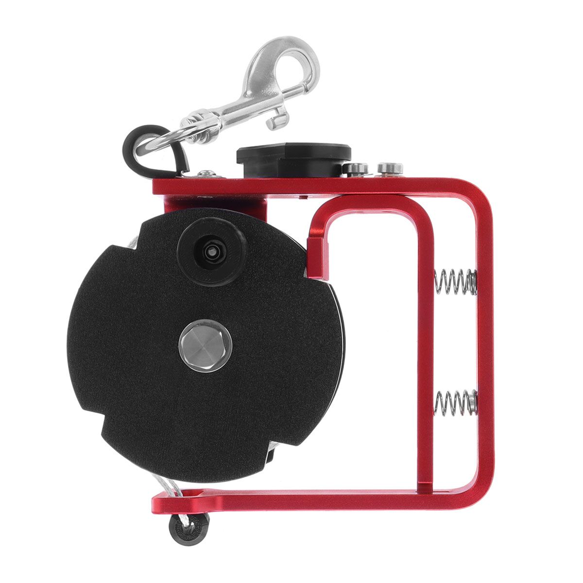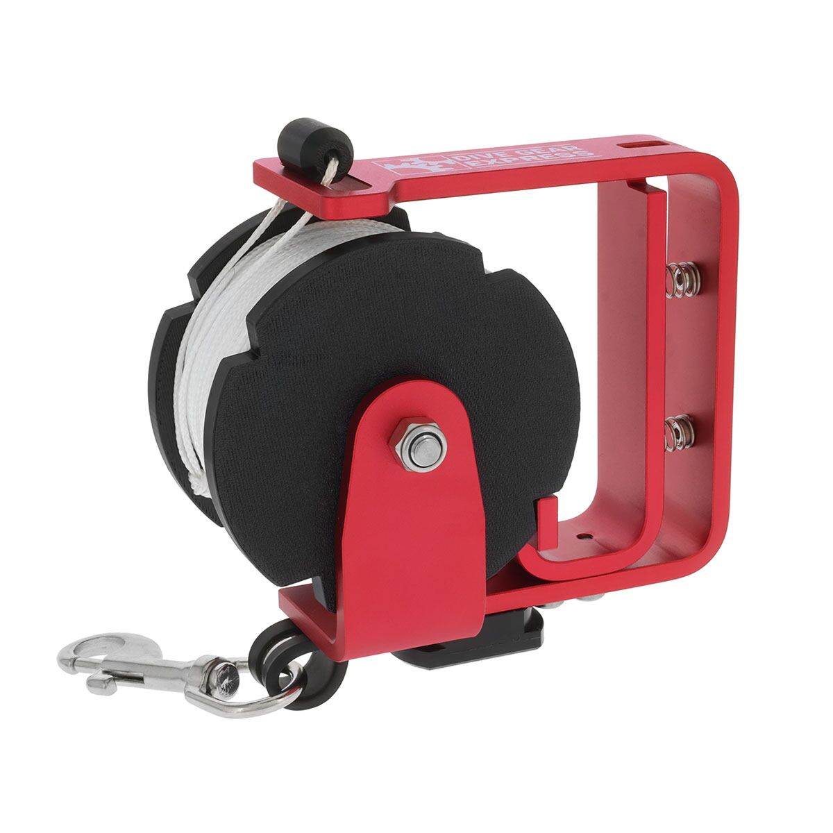 Popular for deploying lift bags and SMBs, the DGX Handbrake Reel features rugged anodized aluminum frame and polyamide spool with a stainless steel axle and replaceable bolt-snap. A spring loaded hand brake system in the handle mechanically prevents unwanted free spooling of the line and includes a switch to lock the brake open and allow free spooling when desired. Adjustable tension control that will not backlash or birdnest with { 250 ft | 75 m } of white #24 braided nylon line on a spool approximately { 4 in | 10 cm} in diameter.