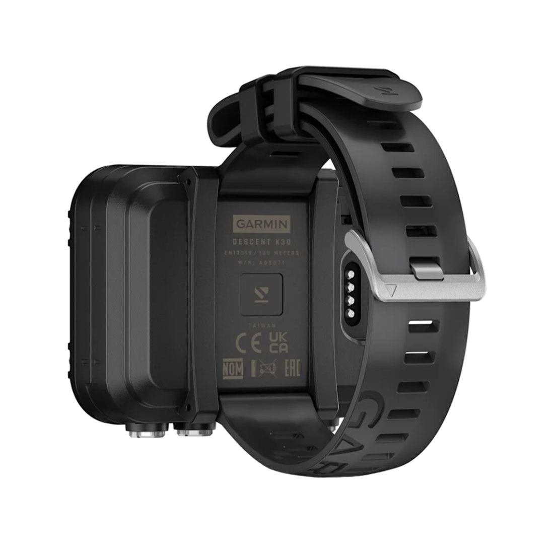 What's in the box? - The box contains the Garmin Descent X30i dive computer with silicone wrist band, along with a charging clip/cable, screen protector kit, and quick start guide. If you want a well padded case suitable for boat use, consider adding the optional DGX Padded Storage Bag. Accepts Garmin 26 mm Quick-Fit silicone wrist bands and bungee mount.