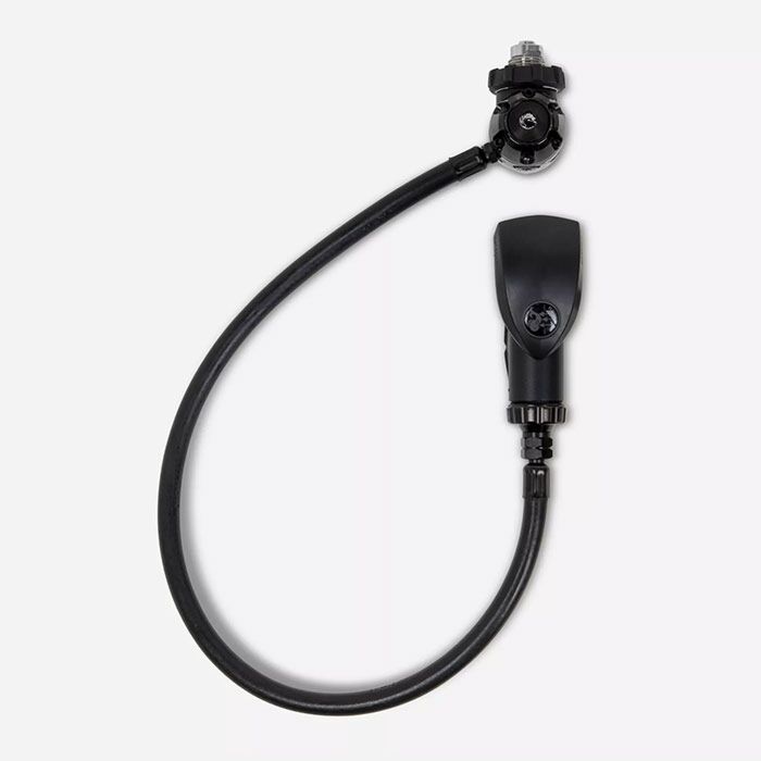The low-profile compact Xstream second stage uses pilot-operated upstream demand valve technology that also seals the seat without the use of conventional knife edge design seating systems. This servo-assist feature allows for very low inhalation effort and also eliminates any need for a venturi switch or adjustment knob. The second stage is also ambidextrous, allowing both left and right hose routing and breathes equally well in nearly any swimming position while the side mounted exhaust directs the bubbles out of the field of vision.